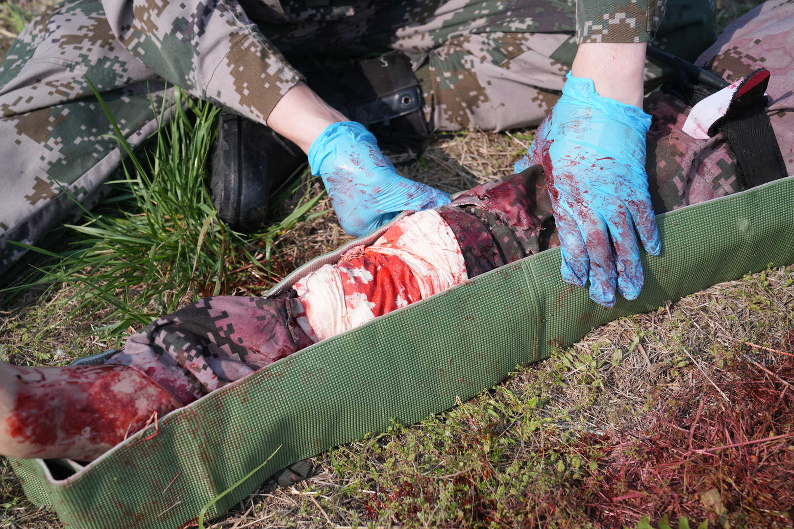 2)    It can simulate fresh wound bleeding of amputated limbs caused by explosions. The traumatic stress reaction of legs can be seen and unconscious movement occurs. The hemostasis can be achieved by applying a tourniquet.