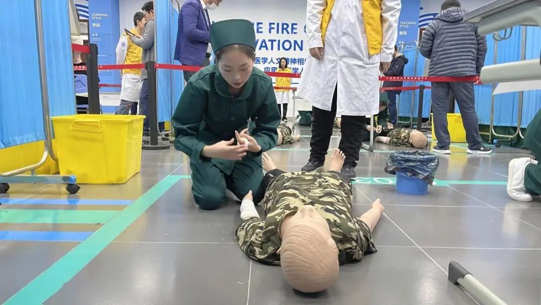 實(shí)操采取賽道式,分為3個(gè)賽道,每個(gè)賽道設(shè)6個(gè)賽站,模擬不同的緊急情況,考驗(yàn)參賽學(xué)生的應(yīng)急反應(yīng)和實(shí)際操作能力。包括了成人心肺復(fù)蘇+自動(dòng)體外除顫器、成人氣道異物梗阻海姆立克急救法、繃帶三角巾包扎和骨折現(xiàn)場(chǎng)外固定等常見(jiàn)急救操作。