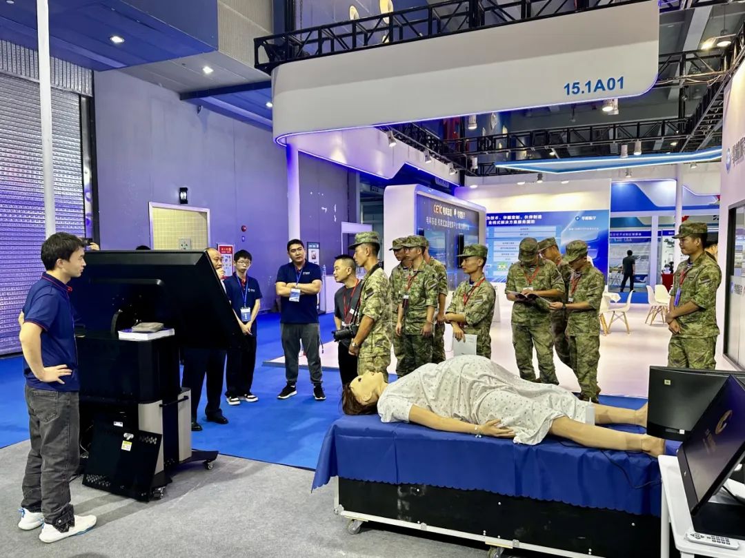 天堰科技作為國(guó)內(nèi)高端醫(yī)教產(chǎn)品研發(fā)制造商和服務(wù)提供商,也積極投入衛(wèi)勤培訓(xùn)設(shè)備的開(kāi)發(fā),并與國(guó)內(nèi)著名軍醫(yī)大學(xué)進(jìn)行強(qiáng)強(qiáng)合作。本次展會(huì)攜智能化戰(zhàn)創(chuàng)傷模擬訓(xùn)練系統(tǒng)、自救互救模擬人、智能分娩模擬人、臨床醫(yī)學(xué)模擬病人系統(tǒng)等多款自研產(chǎn)品參加。在為期3天的會(huì)展中,天堰科技本著 “讓真實(shí)觸手可及”的宗旨,向參展人員充分展示了天堰科技在軍民兩用、醫(yī)學(xué)教育領(lǐng)域內(nèi)的行業(yè)優(yōu)勢(shì)、產(chǎn)品專業(yè)性和豐富性,吸引了眾多部隊(duì)領(lǐng)導(dǎo)停駐展位,交流溝通。