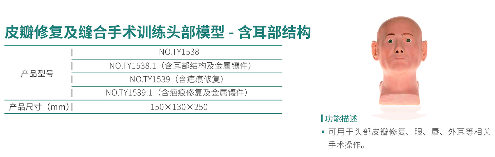 皮瓣修復及縫合手術(shù)訓練頭部模型 - 含耳根結(jié)構(gòu)